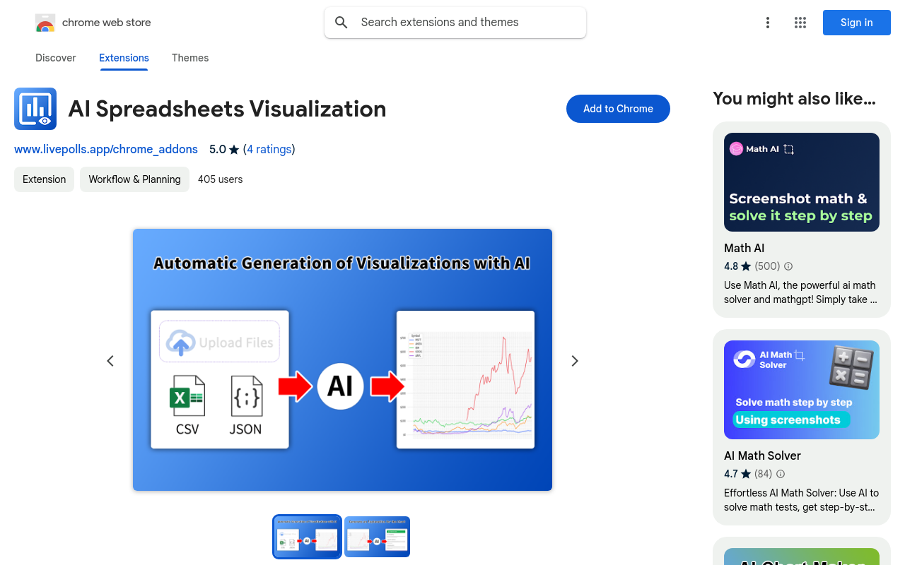 GPT Spreadsheets Visualization (AI电子表格可视化)是一款基于 Chrome 浏览器的扩展插件,专注于通过 AI 技术(如 LLM 大语言模型) 实现数据可视化与信息图表的自动化生成,提升用户在数据处理和展示中的效率。
