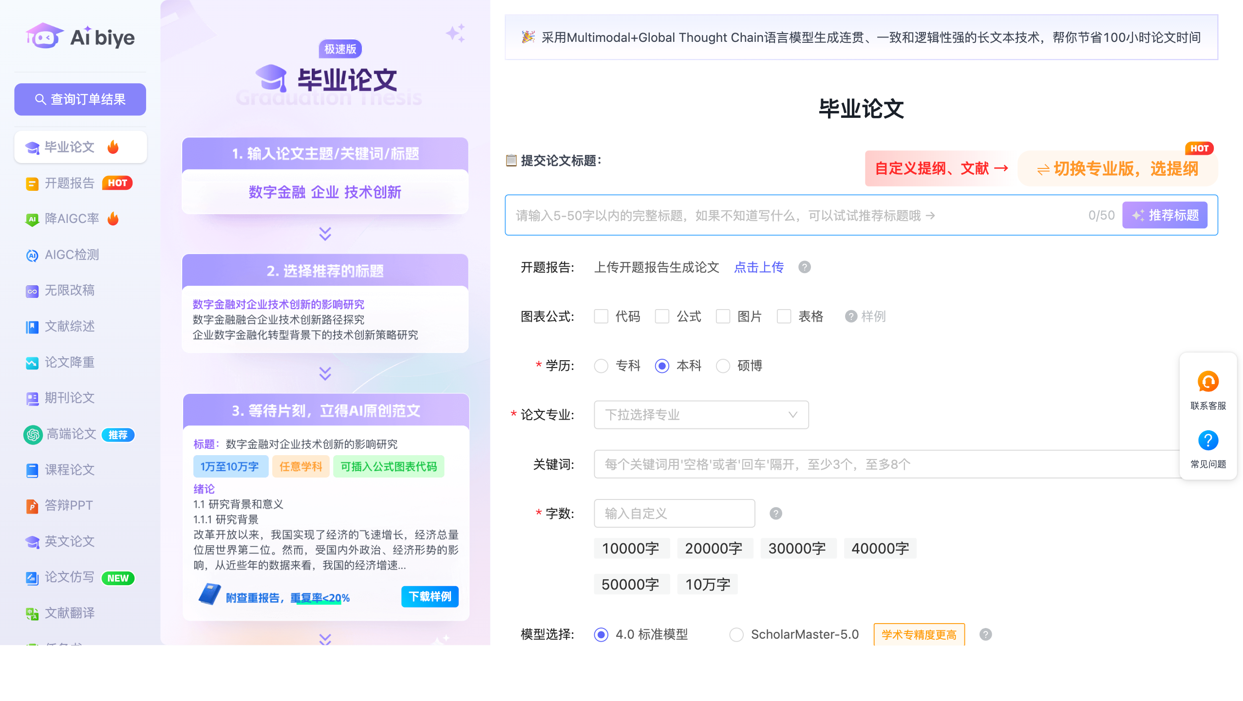 Aibiye(https://www.aibiye.com/)是一个AI驱动的学术写作平台,专为生成学术论文、文献综述、开题报告、任务书和答辩PPT等文档而设计。它采用多模态 + 全球思维链语言模型,能够产生连贯、逻辑性和一致性的长文本输出,帮助用户节省高达100小时的写作时间。平台支持多种学术文档类型,覆盖多个学科领域,强调自动化和高效性,主要面向需要快速起草学术内容的用户。