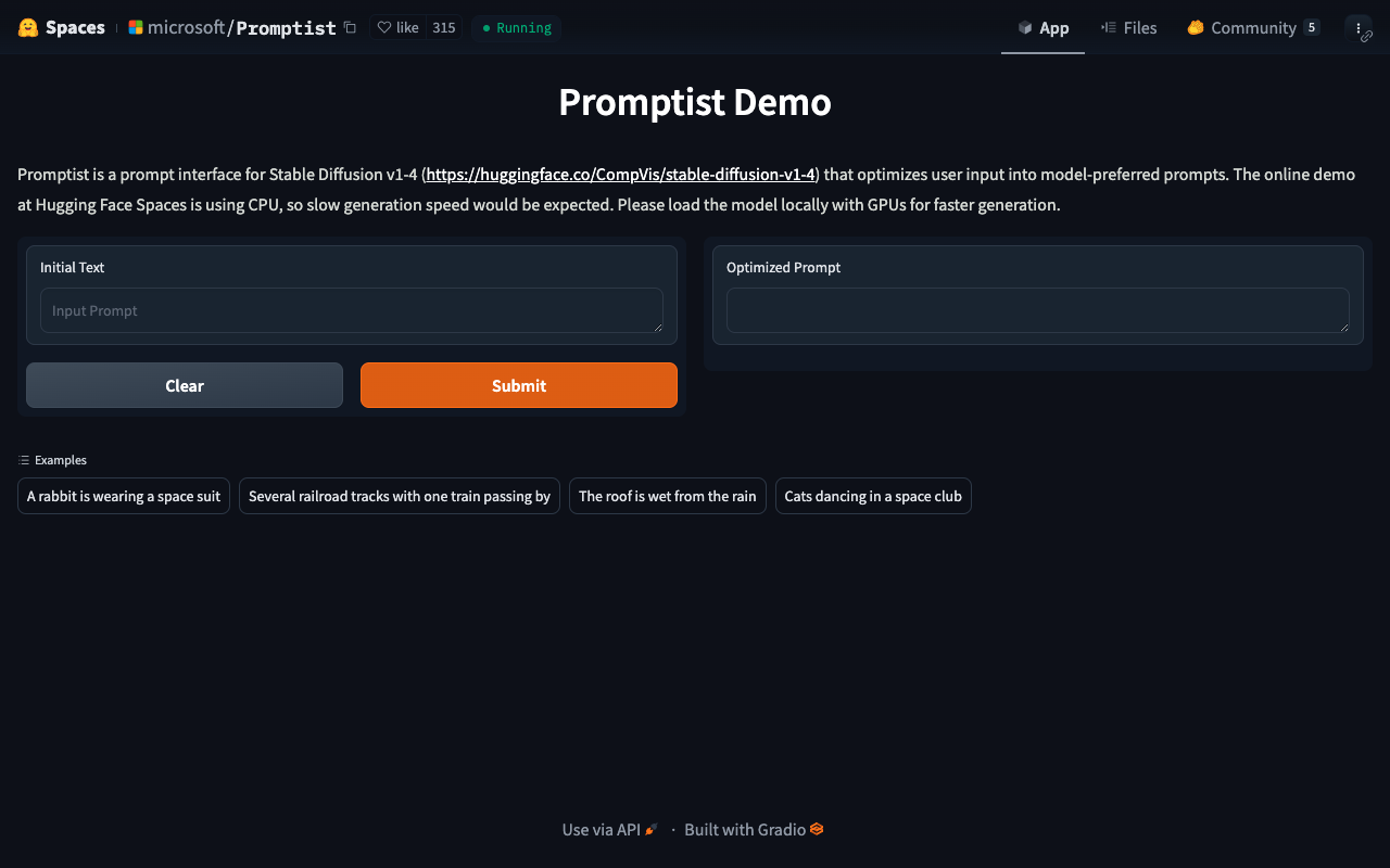 微软在Hugging Face平台上托管了一个名为Promptist的AI工具空间,专门用来解决一个常见问题:当你用Stable Diffusion生成图片时,不知道怎么写提示词才能让AI明白你想要什么。