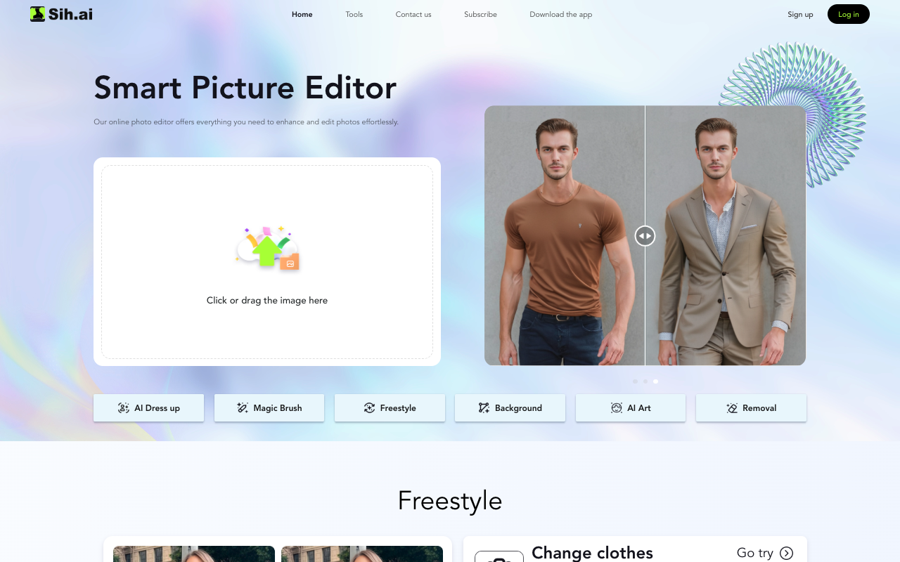 https://www.sih.ai 是一个基于人工智能技术的在线图像编辑平台,主要功能是通过先进的AI技术帮助用户轻松编辑和转换照片,提供多种创意和实用的图像处理工具。