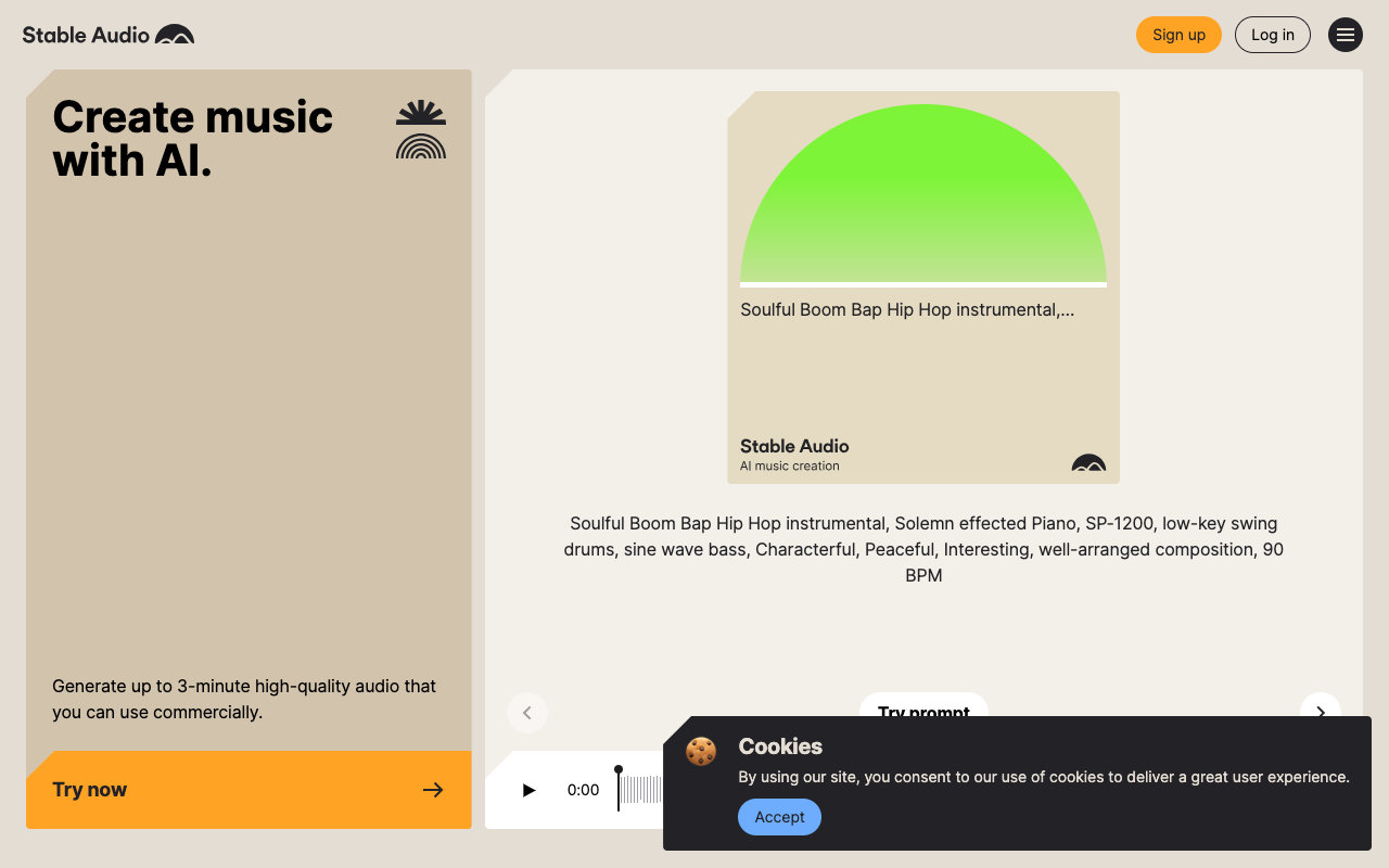 StableAudio是由知名AI公司Stability AI(Stable Diffusion的开发者)推出的AI音乐生成平台,专注于通过人工智能技术辅助用户创作音乐和音效。
