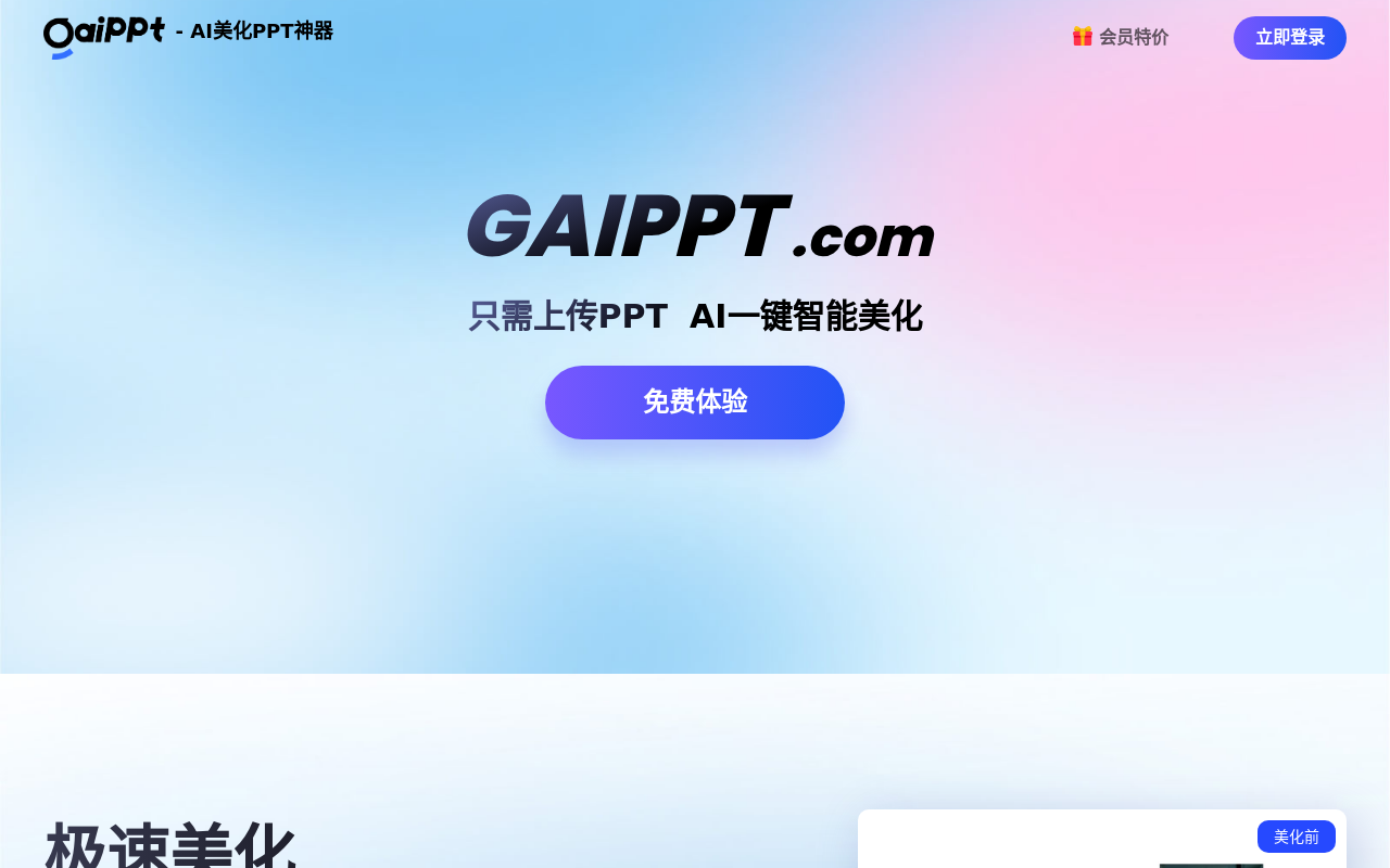 GaiPPT(https://www.gaippt.com )是一款基于人工智能技术的PPT智能美化工具,专注于提升用户制作演示文稿的效率与专业度。