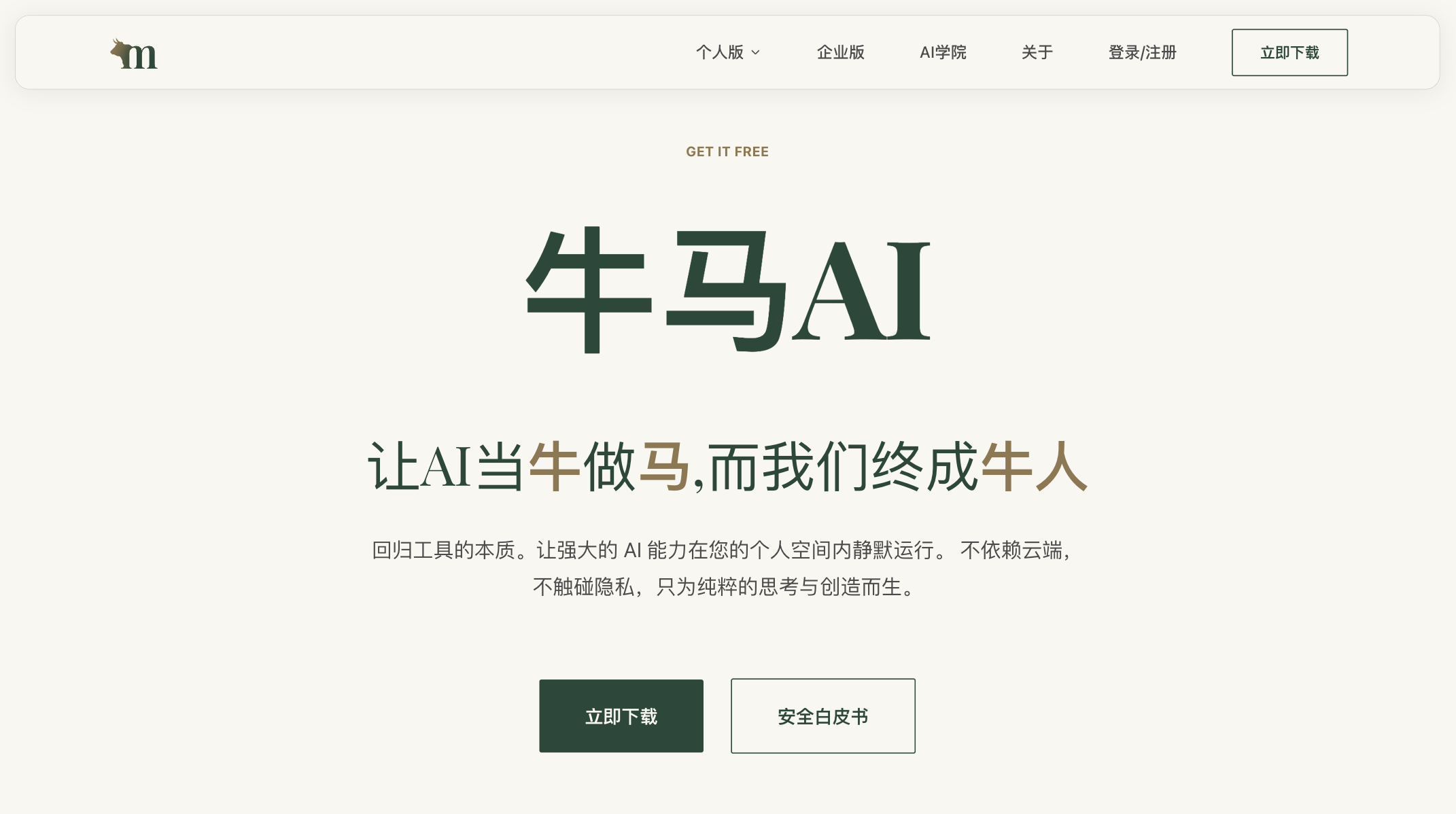 牛马AI是一款主打完全本地离线运行、数据绝对隐私、自动化办公的桌面端AI生产力工具,口号是让AI当牛做马,你终成牛人,核心价值是把敏感数据留在本地、把重复工作交给AI,一人顶一支团队,且核心功能永久免费。