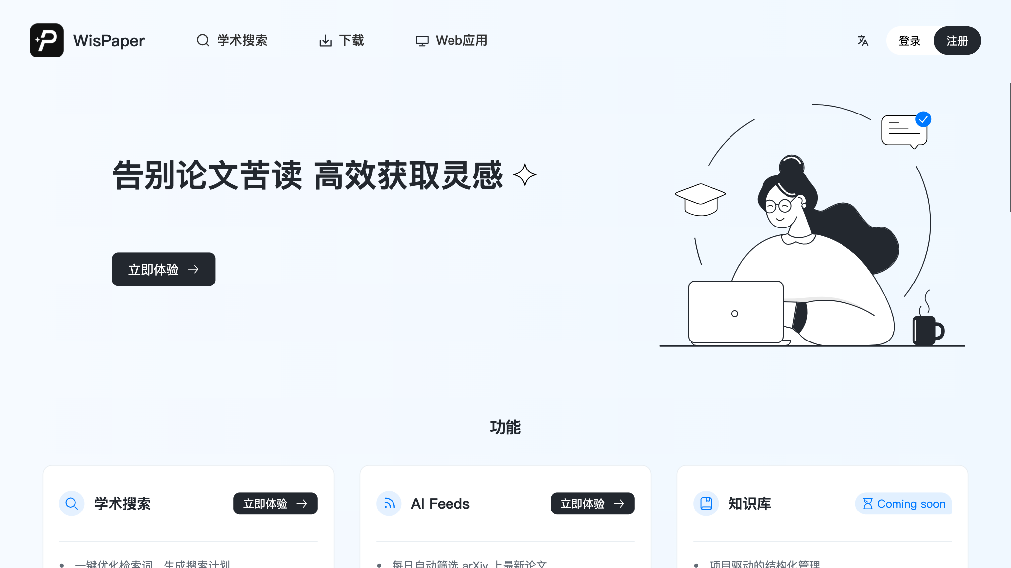 相较于传统工具(如Google Scholar或Zotero),WisPaper有以下独特优势:
