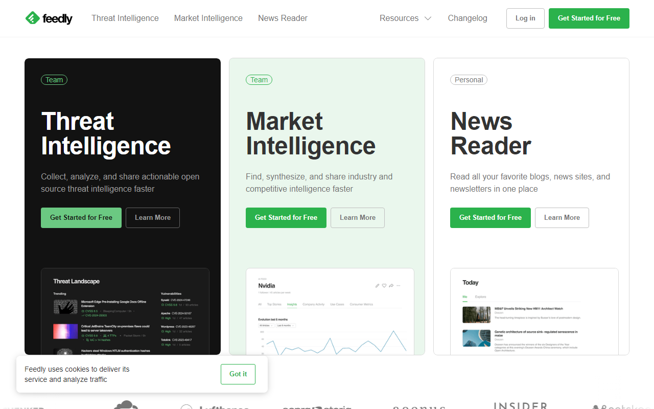 Feedly 是一个新闻聚合和内容管理平台,帮助用户在一个地方集中跟踪、组织和阅读来自新闻网站、博客、YouTube、社交媒体等超过4000万个信息源的内容。它通过RSS订阅、个性化分类、AI智能筛选和团队协作功能,服务于个人阅读、市场情报、网络安全研究等多种场景。