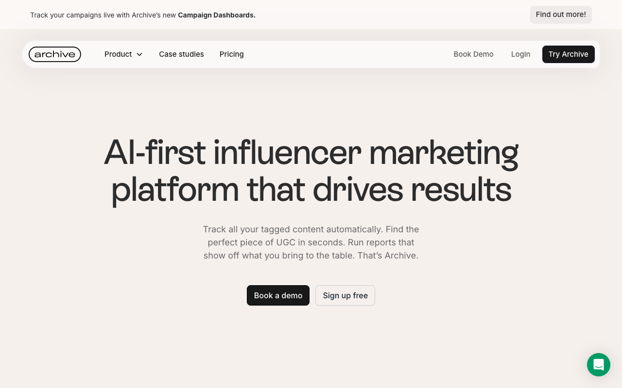 • 实时数据监控:Archive 提供 Campaign Dashboards,允许品牌实时跟踪营销活动的效果,例如 UGC 的参与度、曝光量或转化数据。