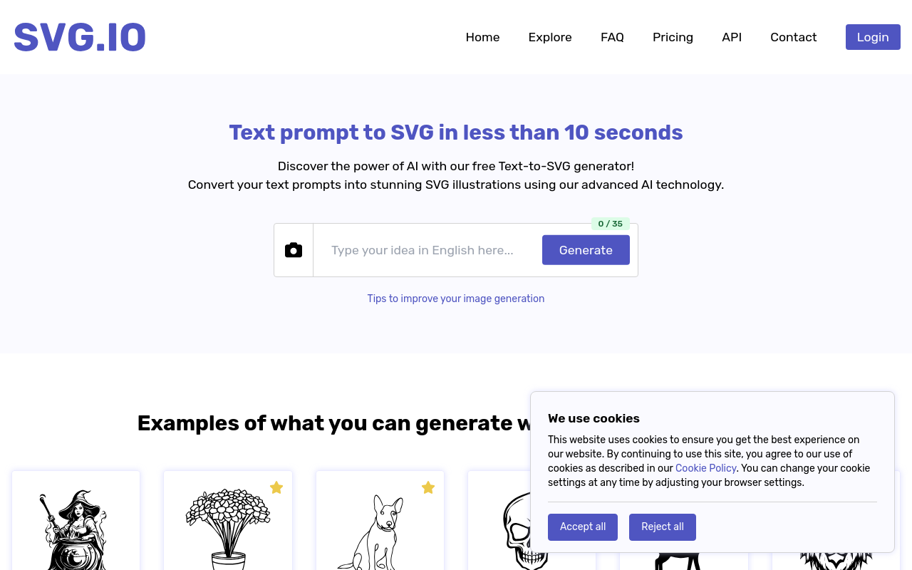 - AI技术:SVG.io利用先进的AI算法,将文本提示转化为矢量图形,生成结果快速且富有创意。
