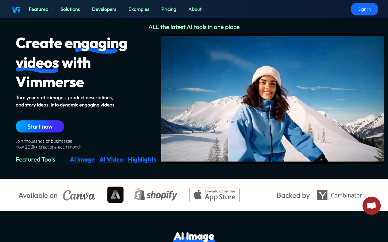 • 官网主打:“Create engaging videos with Vimmerse” —— 将静态图片、产品描述、故事灵感转化为动态视频内容 。