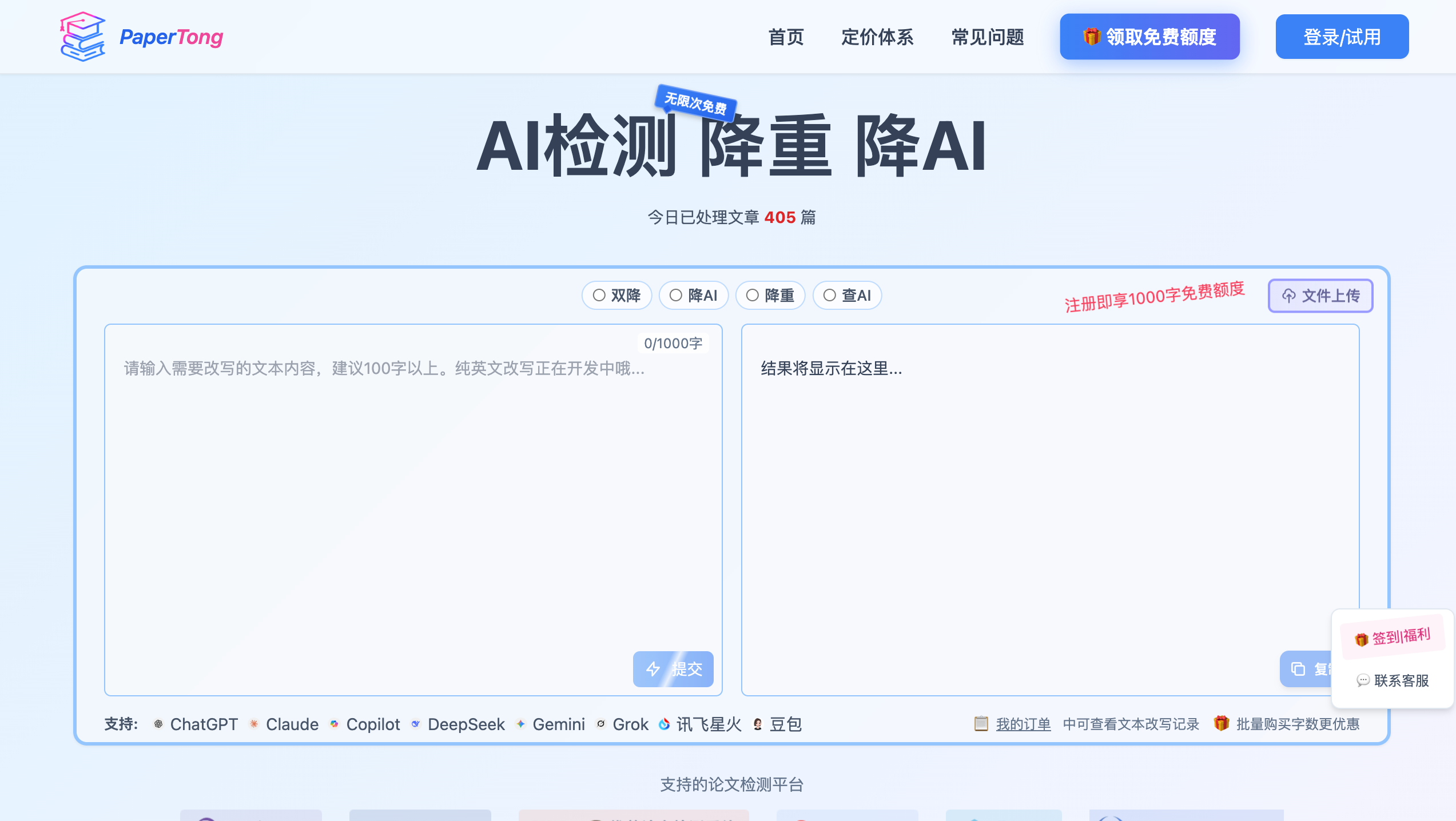 PaperTong是一个专注于学术论文工具的在线平台,主要面向学生、研究者和学术从业者,提供论文原创性检测和优化服务。