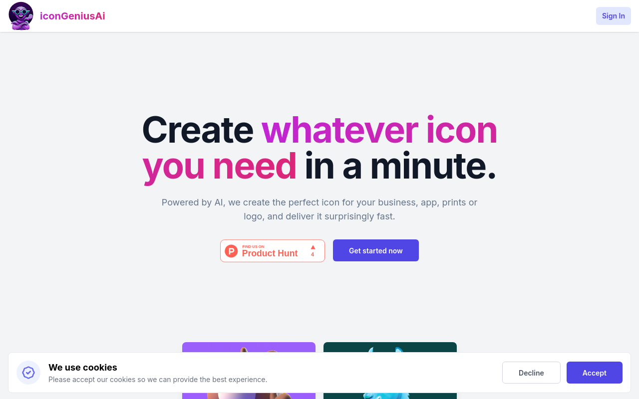 在iconGeniusAi网站上轻松创建适用于各种用途的定制图标。