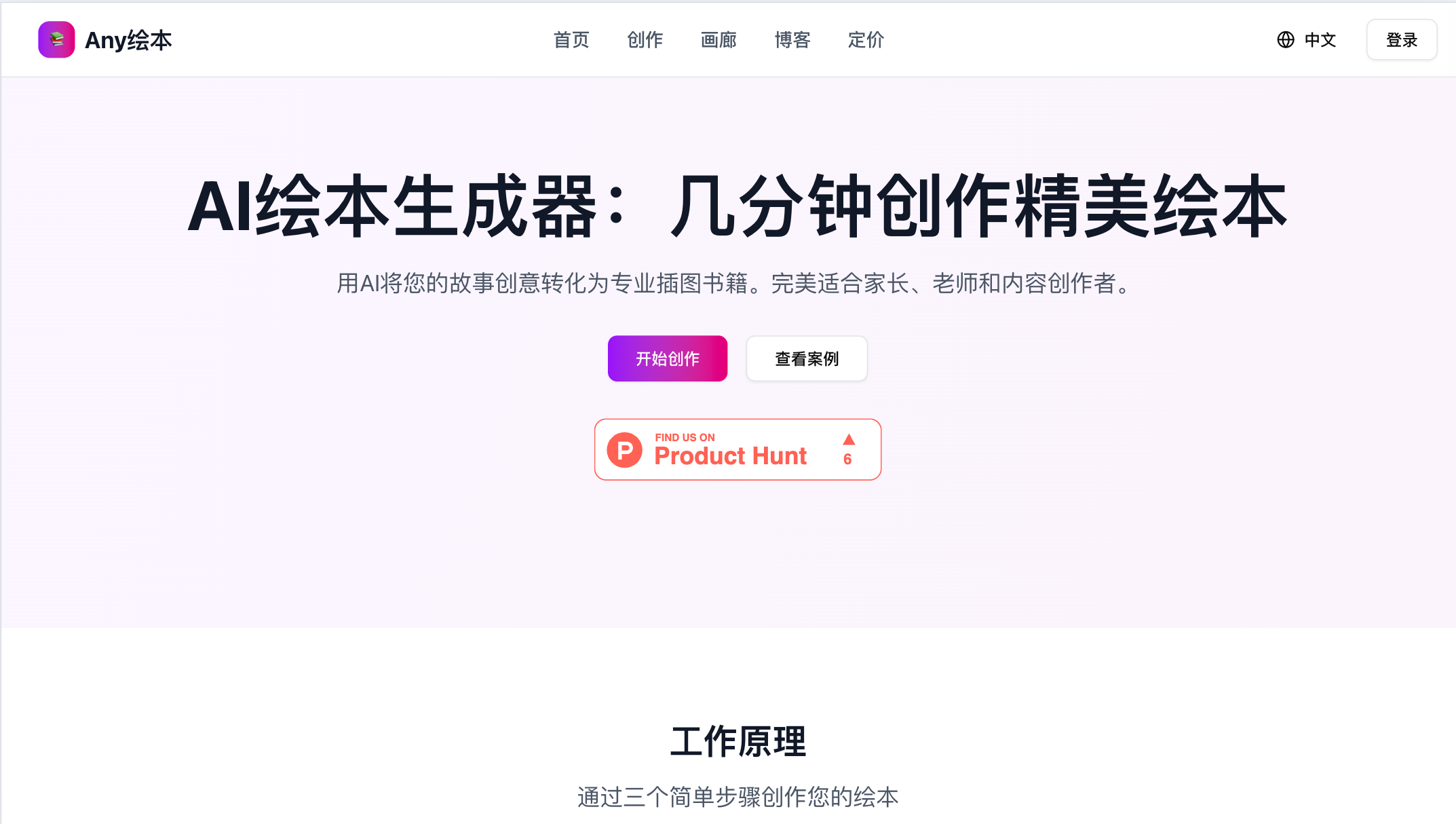 Any绘本 是一款AI驱动的免费开源绘本生成工具,能够将用户的故事创意或文本内容快速转化为配有精美插图的专业绘本,操作流程简单高效,无需专业的绘画或排版技能,适合家长、教师、内容创作者等各类人群使用,可满足个性化故事创作、教育资源开发等多种需求。