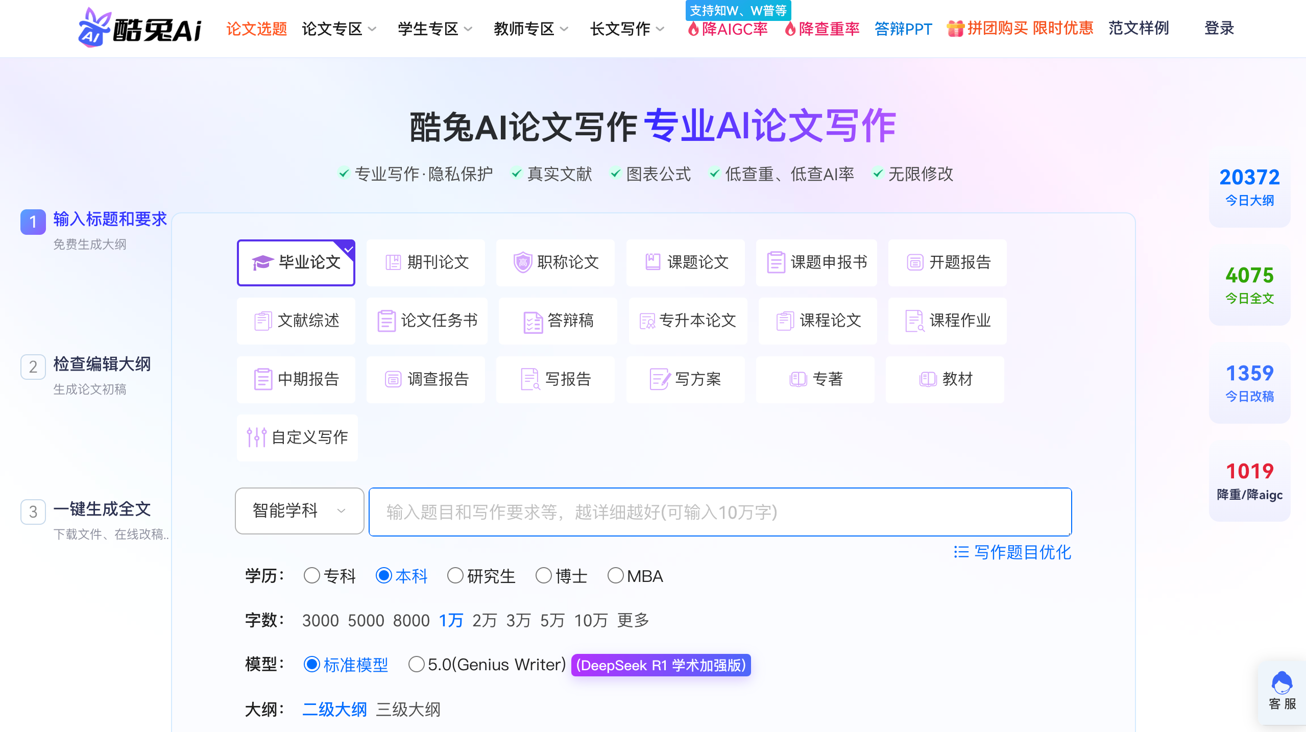 - 大纲服务:提供免费大纲,支持二级、三级大纲,也可录入用户自定义大纲并按其生成论文。
