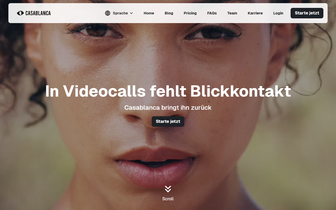 它不需要你购买任何额外的硬件摄像头。与其他专注于美化背景或降噪的工具不同,Casablanca AI 专门攻克“眼神交流”这个让线上对话感觉不对劲的细节。这项由德国团队开发的技术已经申请了专利。