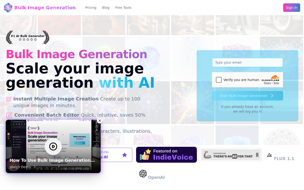 Bulk Image Generation是一个专注于AI批量生成图片的在线工具和服务。它的核心定位是帮助用户(尤其是企业、营销人员、内容创作者)一次性自动创建大量、多样化且高质量的图片,从而显著提升工作效率。