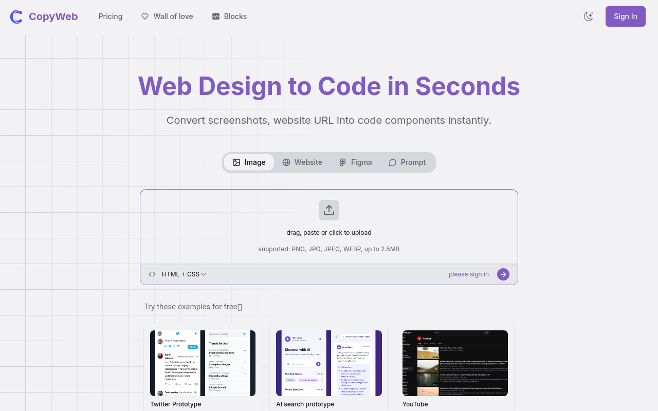 CopyWeb.ai 是一个基于人工智能技术的网页克隆与代码生成平台,主要服务于开发者、设计师及需要快速实现网页原型的企业。其核心功能是通过AI技术将设计稿或现有网页转化为可编辑的生产级代码,显著提升开发效率。以下从功能特点和应用场景两个维度详细介绍: