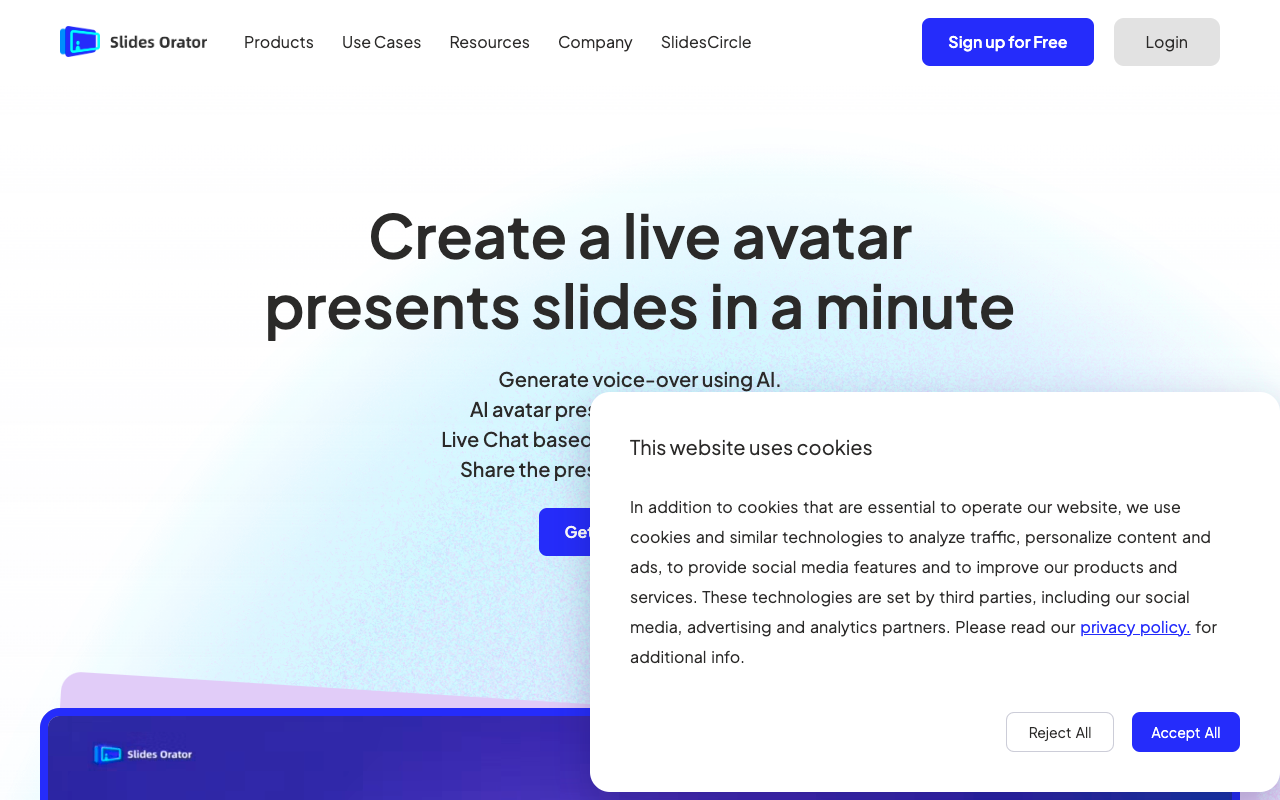 SlidesOrator 是一款基于AI技术的创新性幻灯片解说平台,核心功能是通过3D数字人实现动态内容展示与智能交互。AI会自动生成与内容匹配的旁白解说词,并通过3D虚拟形象进行动态展示,模拟真人演讲效果。