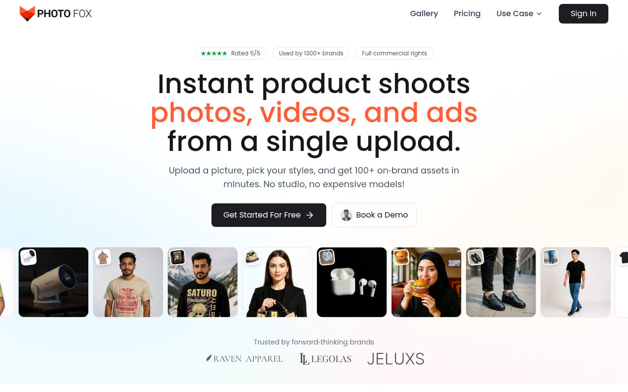 PhotoFox AI(https://photofox.ai)是一个专为电子商务品牌和营销人员设计的AI驱动的内容生成平台,旨在通过人工智能技术简化并加速产品摄影、视频和广告素材的制作流程。它通过上传一张产品图片即可生成多样化的专业级视觉内容,无需传统摄影棚、模特或复杂后期制作,显著降低成本(最高可节省90%)并提升效率(速度提升10倍)。以下是对其功能和用途的详细介绍: