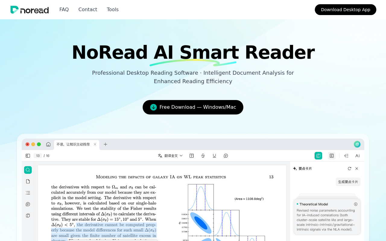 https://noread.pro 是一款专业桌面 AI 智能阅读软件,核心是通过 AI 技术优化文档阅读体验,帮用户高效处理 PDF 等文档、提升阅读与知识吸收效率。
