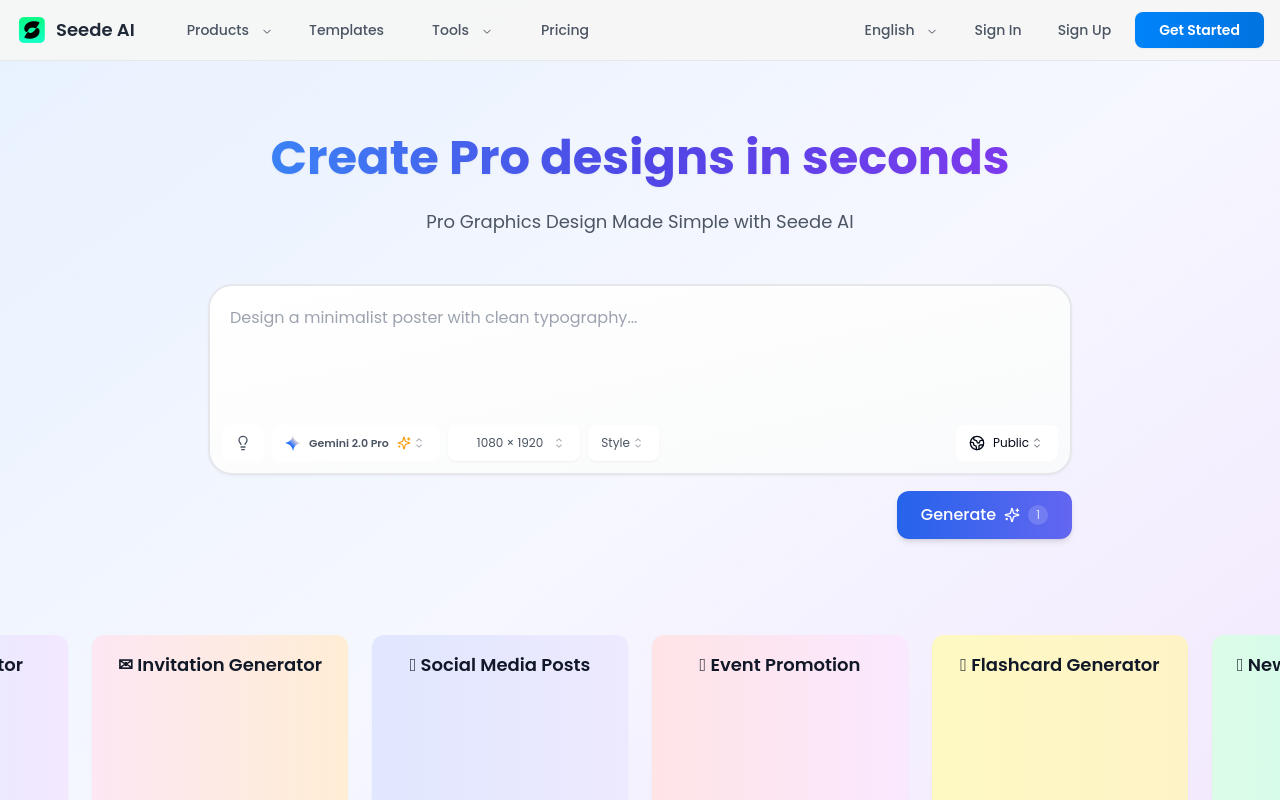 • Seede AI:聚焦实用设计,内置营销模板和社交媒体适配。