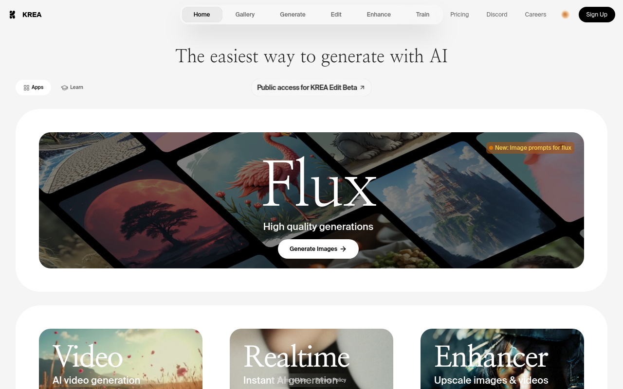 Krea.ai 是一个基于人工智能的创意设计平台,专注于图像和视频的实时生成与编辑,结合前沿AI技术为设计师、艺术家和普通用户提供高效创作工具。