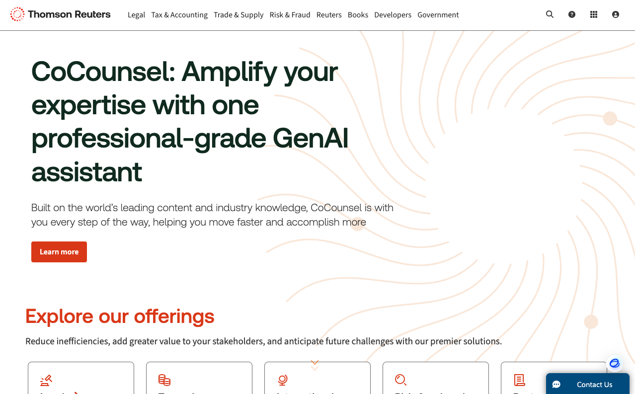 提供如Westlaw这样的法律数据库,以及法律实践管理软件,帮助律师事务所管理案件、优化工作流程和分析潜在的法律风险。平台整合了全球的法律判例、法规和合同模板,是法律研究和合规审查的得力助手。