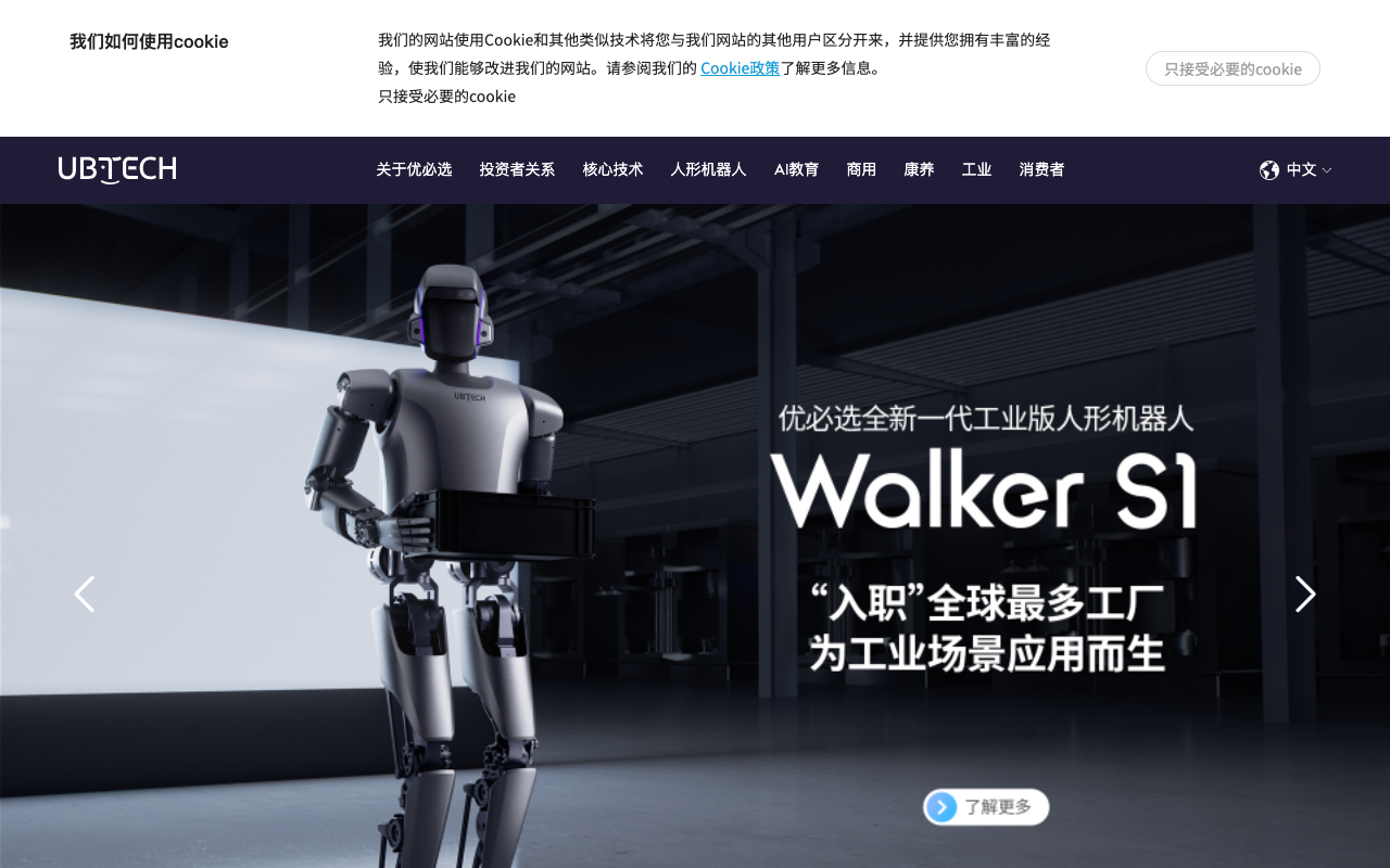 优必选科技(UBTECH)中文官网提供全面的智能机器人产品信息,涵盖Walker系列人形机器人、AI教育套件、商用服务及清洁机器人。网站展示公司技术成果、应用场景,并提供产品参数、购买咨询与开发者资源下载服务。适合个人用户、教育机构、企业客户及技术开发者了解与获取支持。