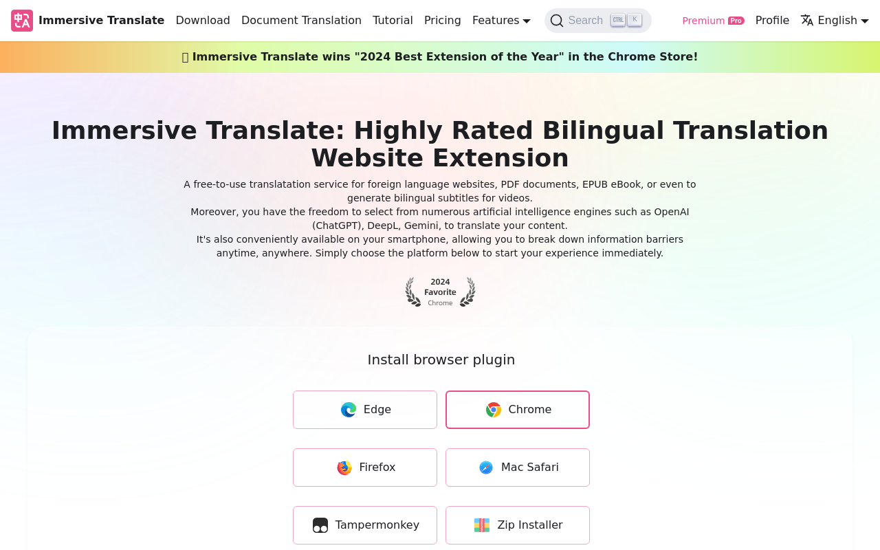 沉浸式翻译是一款免费的双语对照网页翻译扩展,支持智能识别网页主内容,实现段落级双语显示。它集成了DeepL、OpenAI、谷歌翻译等十余种引擎,适用于浏览外文新闻、阅读学术论文、翻译PDF文档和社交媒体内容。该工具支持Chrome、Edge、Firefox等主流浏览器,并提供输入框实时翻译、译文样式自定义等个性化功能。