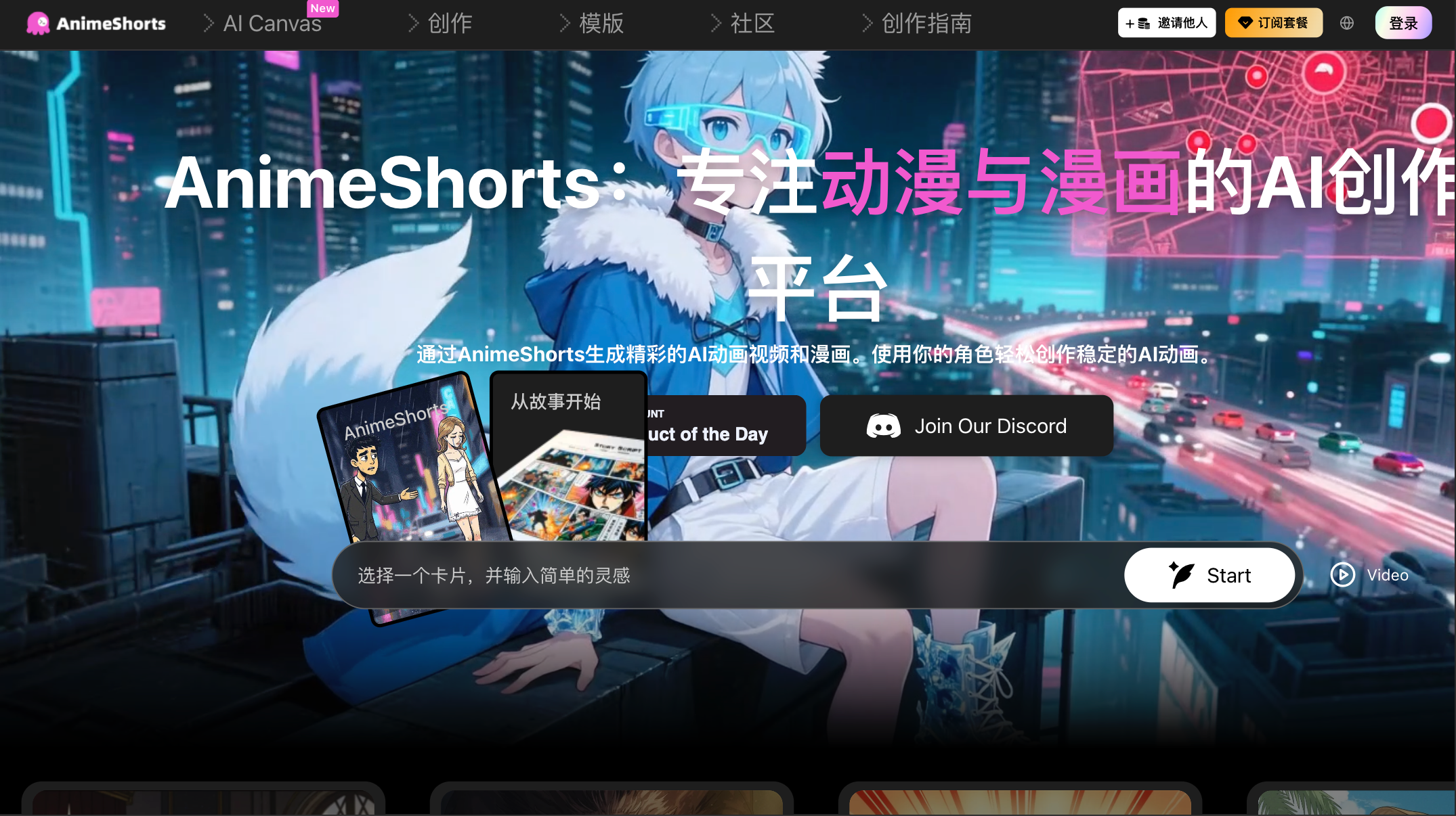 1. 注册与登录:访问官网https://www.animeshorts.ai/,完成账号注册或登录,国内网络访问可能需要特殊工具;