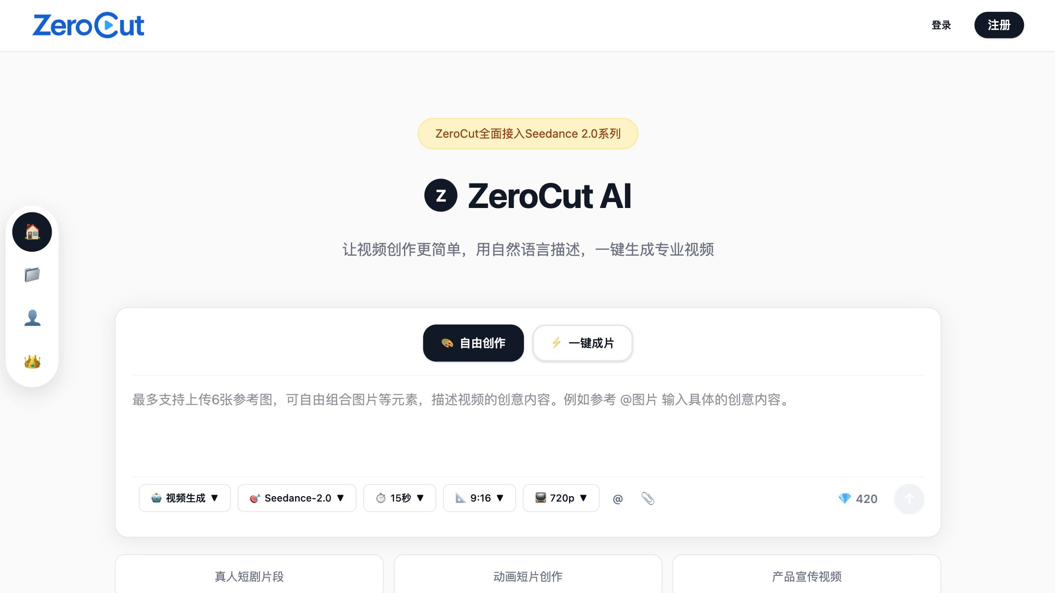 ZeroCut 是轻量化、高易用、强模型的AI视频工具,依托Seedance 2.0,把专业视频制作简化为输文字→点一下,极大降低创作门槛,适合批量产出短视频与商业宣传内容。