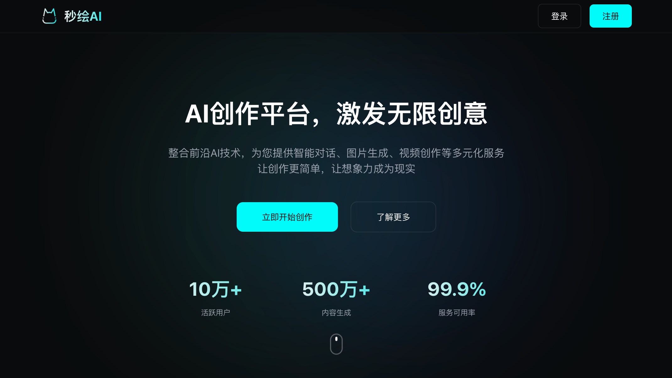 秒绘AI是免费的AI绘画生成平台,支持文生图、图生图、AI视频生成。使用先进的AI模型,一键生成高质量图片和视频。支持人物写真、风景摄影、产品展示、艺术插画等多种风格。