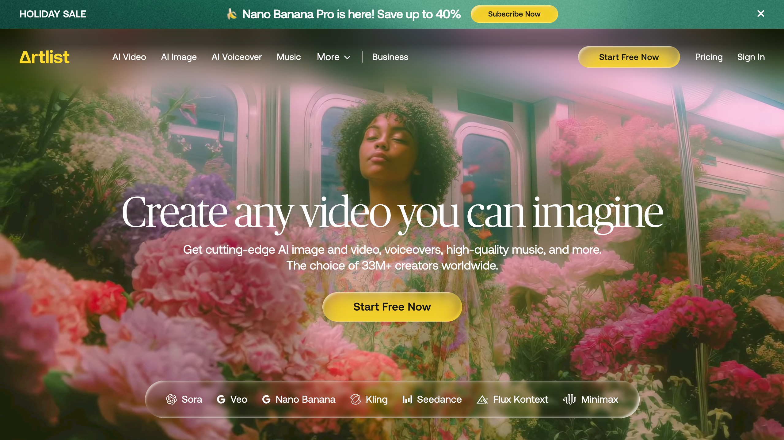 Artlist.io 是一个专为视频创作者、品牌和企业设计的创意平台,其主要目的是通过先进的 AI 工具和高品质的数字资产,帮助用户轻松实现视频制作和内容创作的愿景。它将生成式 AI 技术与专业创意资源相结合,提供从音乐到视频模板的全面支持,适用于个人创作者、团队和商业项目。平台强调“由真实艺术家创作”的内容质量,并确保所有资产和 AI 输出均为免版税(royalty-free),用户可以自由使用、修改、分发和变现,而无需担心版权问题。截至目前,该平台已被全球超过 3300 万创作者选用,是视频生产领域的领先选择。