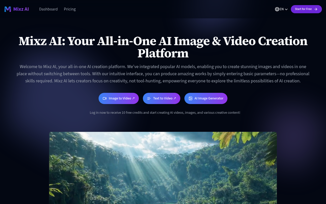想用几句话就变出一张图或一段视频?Mixz AI就是干这个的。它把市面上好用的AI模型都打包在一起,你不用在各个工具间来回切换,在一个地方就能搞定从图片到视频的各种创作。操作简单,哪怕你完全不懂技术,也能玩得转。