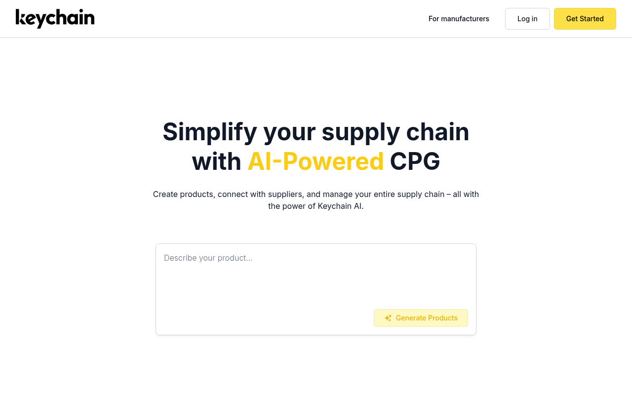 Keychain 是一个专注于消费品制造的B2B平台。简单说,它就像消费品行业的“制造中介”,把想生产产品的品牌方和能生产的工厂连在一起,用技术让整个过程更顺畅。