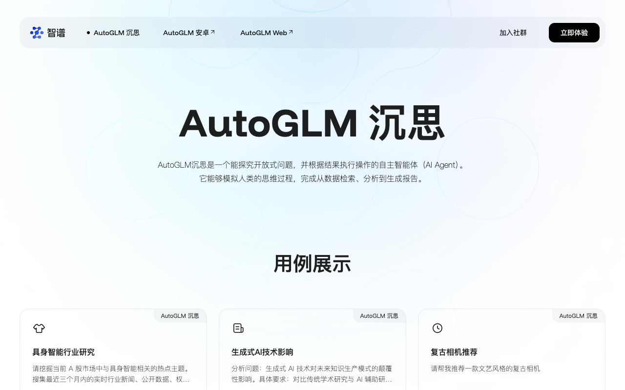 AutoGLM 沉思(AutoGLM Rumination)是智谱AI开发的一个AI智能体。它不只是一个聊天机器人,更像一个能自己动手的智能助手。你可以把它想象成一个数字研究员:给它一个开放式任务,比如“规划一次去日本的深度文化旅行”,它就会自己去网上查资料、比价格、看攻略,最后整理成一份详细的报告给你。