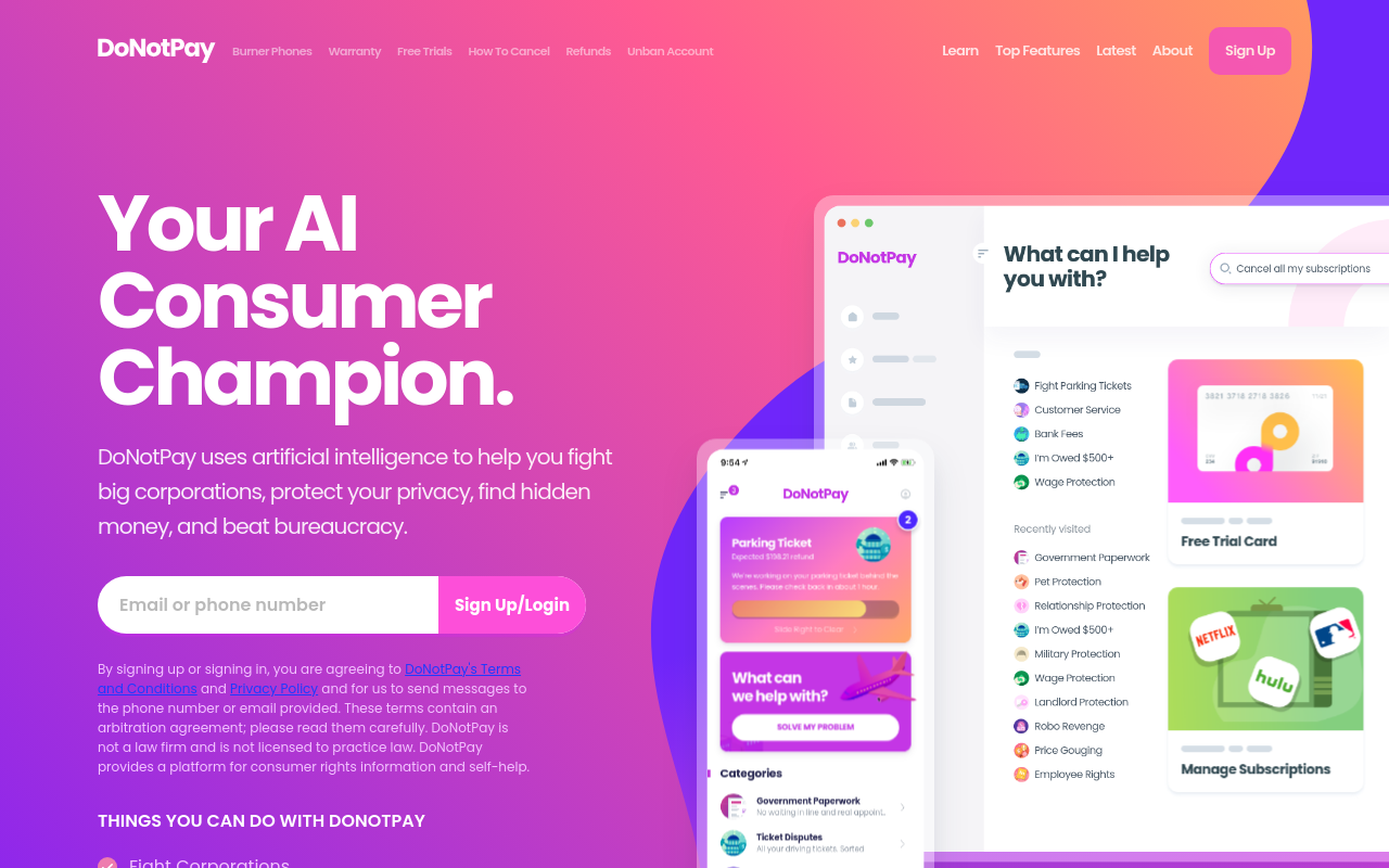 DoNotPay 的功能像一把多功能的瑞士军刀,核心是帮你省时、省钱、省心。