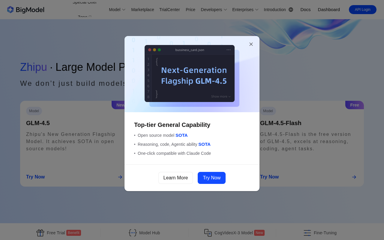 https://bigmodel.cn/ 是智谱AI(Zhipu AI)旗下的大型模型平台。它的目标很明确:不只是造模型,更想用AI帮你做决定。这个平台把智谱自家的各种模型和AI工具都打包在一起,从调用模型、调整模型到实际部署应用,一条龙服务。