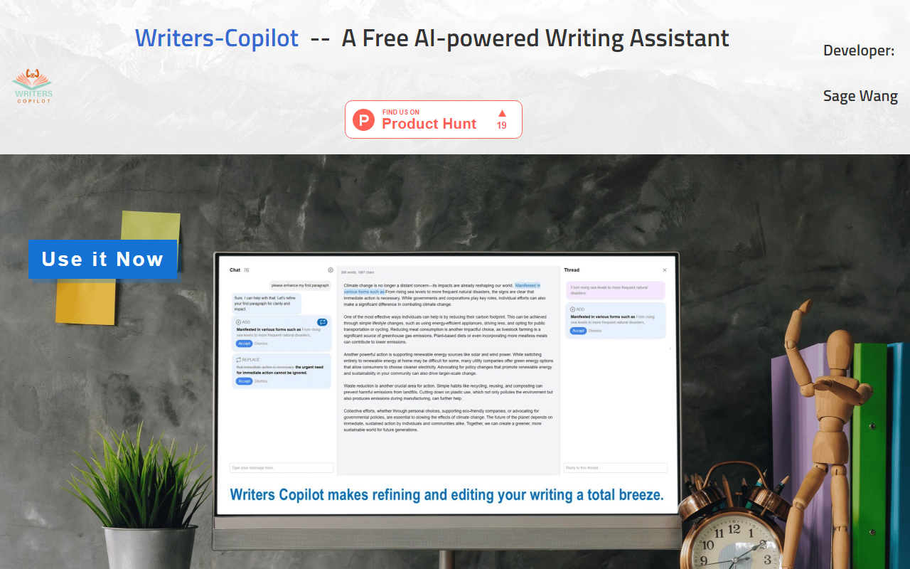 总的来说,Writers Copilot 就像一个坐在你旁边的写作伙伴,你写它看,然后给出一些让它读起来更好的点子。它简单、免费,而且把最终的决定权留给了你。