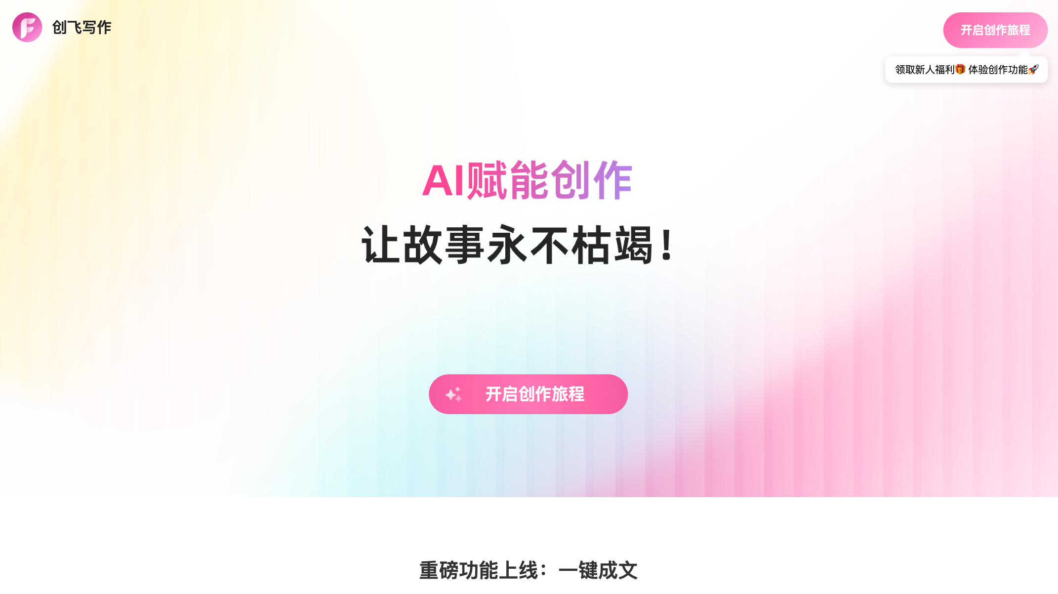 创飞AI是专为网文与小说创作者设计的写作辅助工具。它提供一键成文、大纲扩写、卡文救急、自动润色等功能,帮助解决构思慢、写不长、节奏差等常见问题。支持多种网文风格,操作简单,适合新人作者、网文写手及内容创作者提升写作效率。