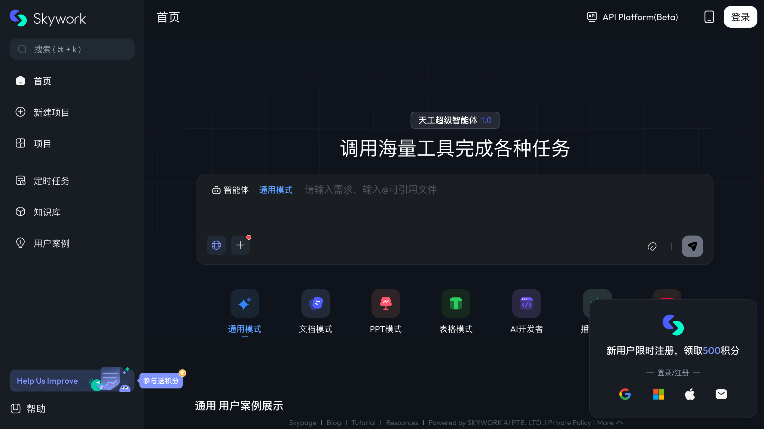 使用方式很直接:通过一个对话式的界面,用自然语言告诉它你想做什么。它主要面向企业办公场景,比如分析师需要快速产出报告,研究团队需要进行数据挖掘和协作,或者内容创作者需要高效制作多格式材料。2025年5月,Skywork超级代理已面向全球发布。