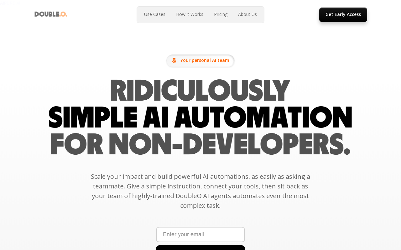 DoubleO.ai 是一个为业务人员打造的AI自动化平台。它的核心想法很简单:让你用说话的方式,告诉AI你想做什么,剩下的交给它来处理,完全不用碰代码。