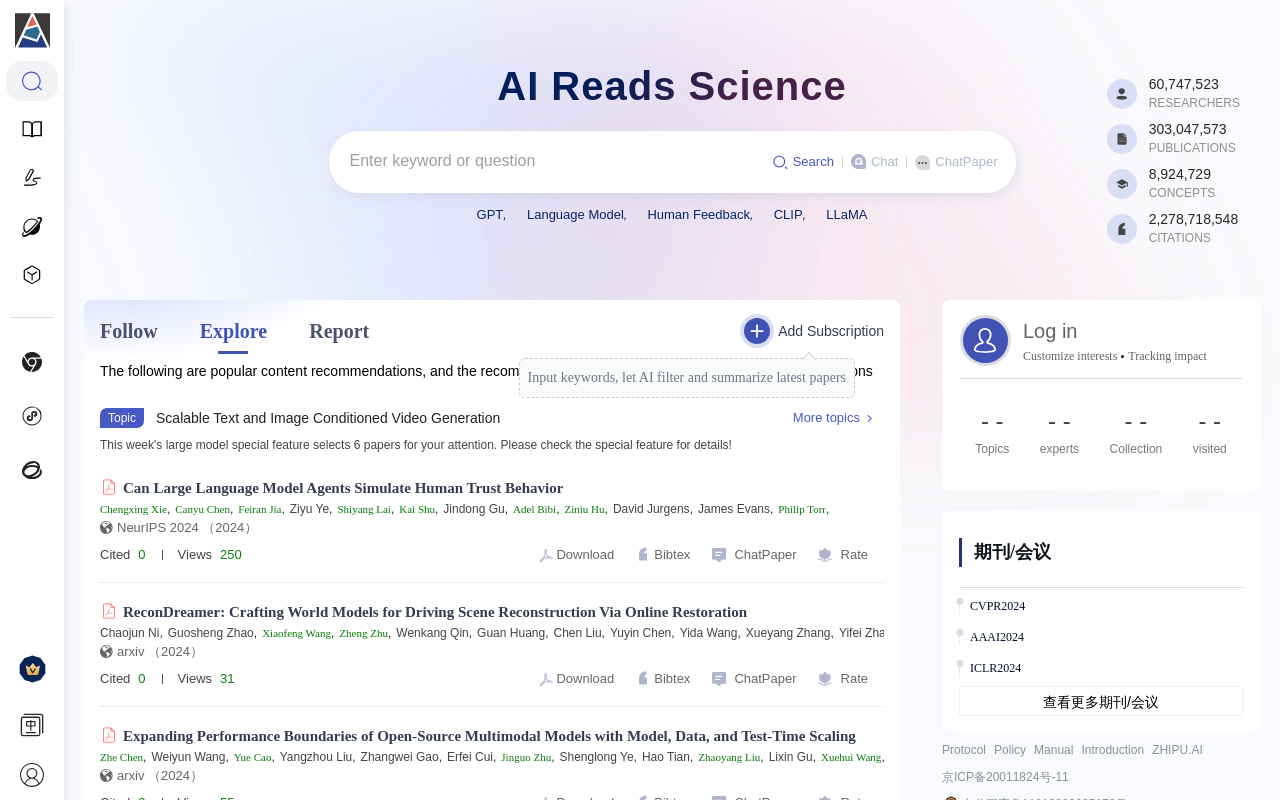 AMiner(https://www.aminer.cn/)是一个由清华大学计算机系研发的学术科技情报分析与挖掘平台。它集学术搜索、科技情报分析和AI辅助研究等功能于一身,拥有完全自主知识产权。