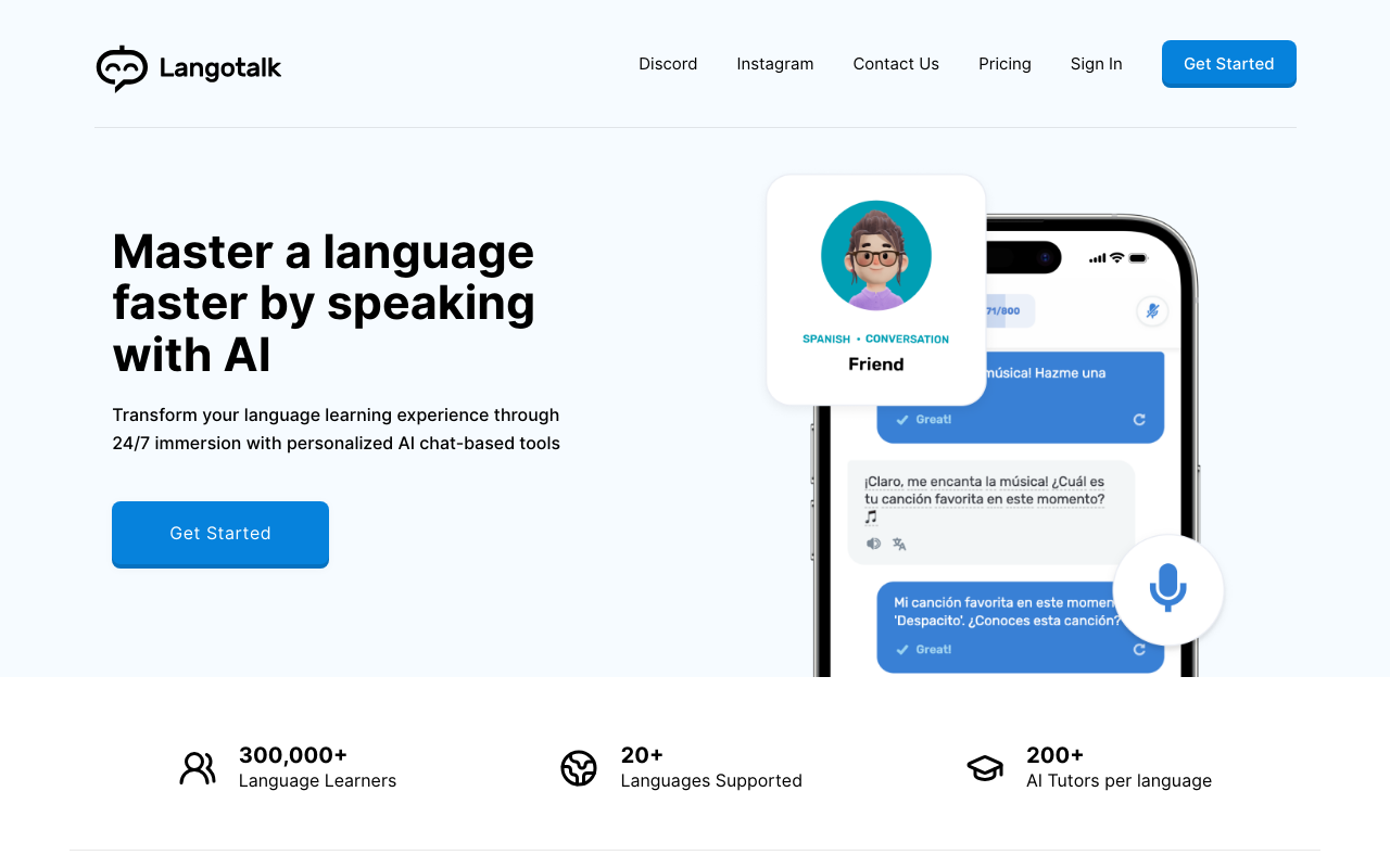 Langotalk通过AI聊天机器人,帮助用户以6倍速度学习西班牙语、英语、法语、德语、荷兰语或意大利语。它提供即时对话、翻译和成就系统,学习过程有趣且免费,两分钟内即可开始与AI练习。