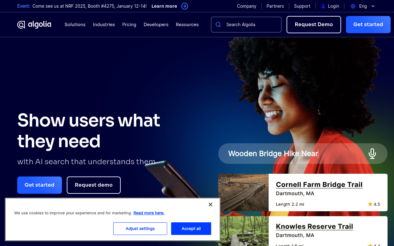 Algolia 的目标是让每次搜索都有意义。它提供一个端到端的 AI 驱动平台,让开发者无需从零搭建复杂的搜索系统。其服务覆盖电商、媒体、SaaS 等多个行业,客户包括 Under Armour、Twitch 等知名公司。