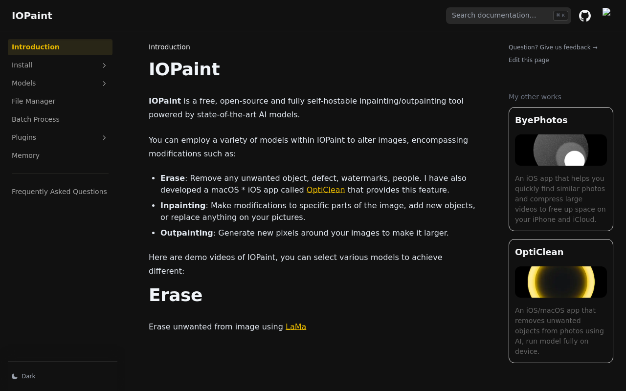 IOPaint 是一个用AI帮你修图的工具箱。它免费、开源,你可以把它装在自己的电脑上运行,不用担心隐私问题。无论是想抹掉照片里乱入的路人甲,还是给老照片补上缺失的一角,它都能帮上忙。