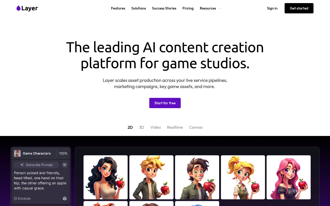 Layer AI是一个专为游戏创作者打造的人工智能平台。它的核心任务很简单:帮你更快地做出游戏里需要的各种画面素材。无论是独立开发者、美术设计师,还是大型游戏工作室的营销团队,都可以用它来生成角色、场景、道具,甚至是宣传视频。