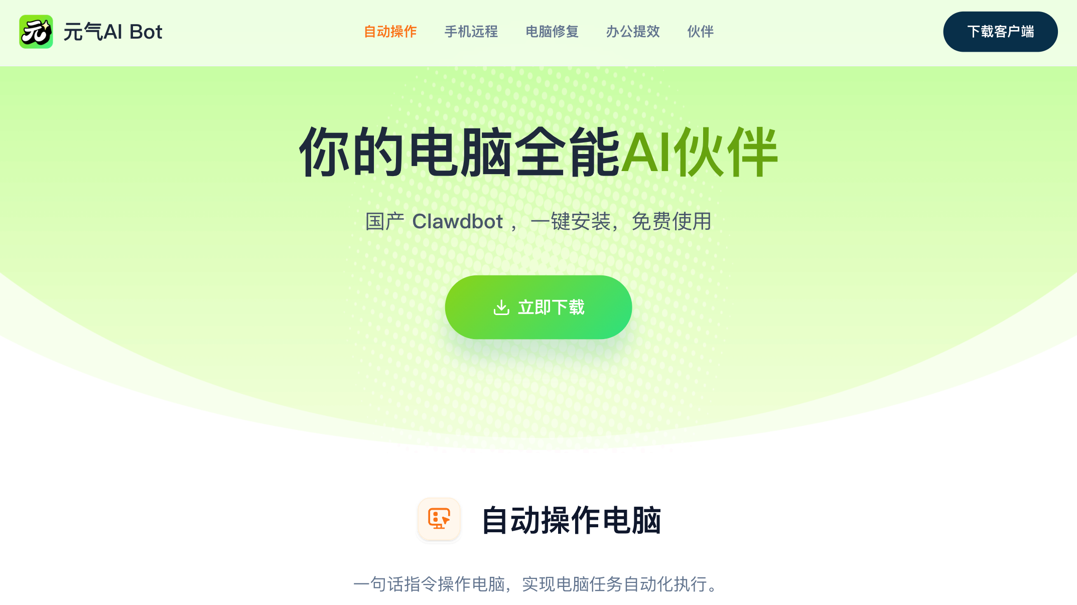 元气AI Bot是猎豹移动推出的一款国产AI桌面助手,定位为你的“电脑全能AI伙伴”。它本质上是一个本地运行在Windows系统上的AI智能体,拥有系统级操作权限,主打真正能“动手干活”,并深度集成了飞书、钉钉等国内办公工具。