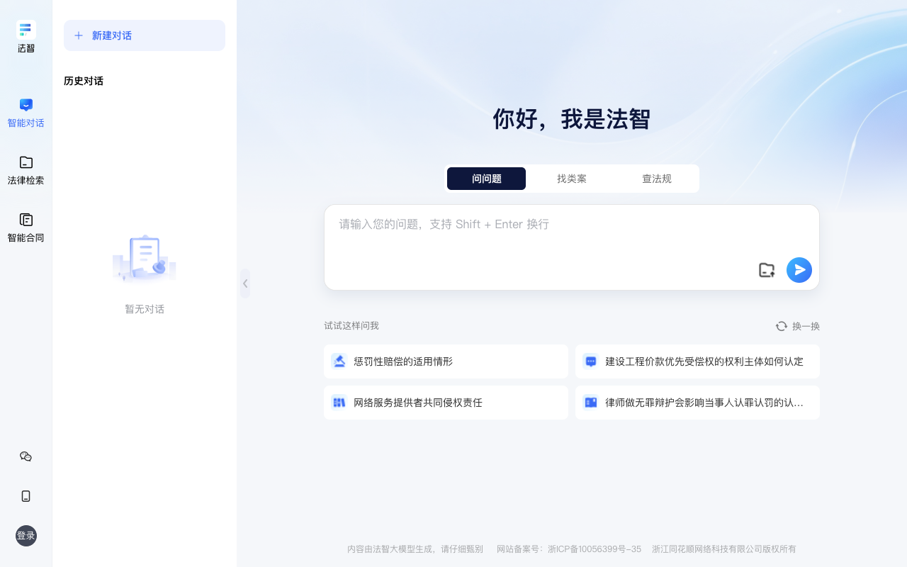 法律咨询与对话:可以直接向AI咨询法律问题,它会基于法律知识库进行解答,并支持多轮对话来厘清复杂情况。
