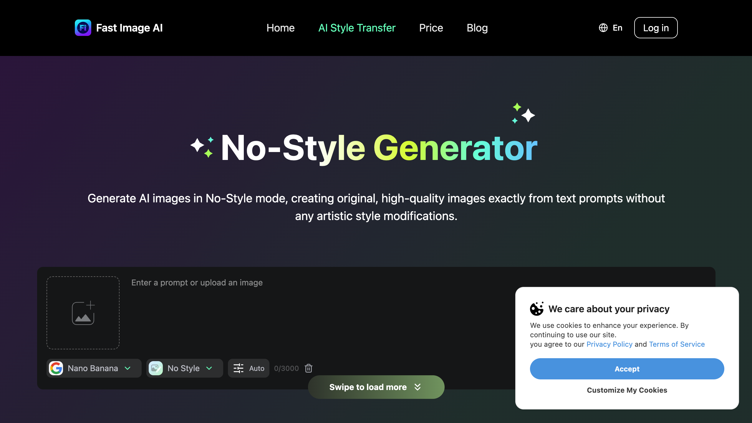 Fast Image AI 旗下的这个平台,专门做一件事:让 AI 老老实实按你的文字描述画画,不添油加醋。它的核心就是“无风格”生成,目标是帮你把脑子里的创意,原原本本地变成图像,而不是先套上一个“吉卜力风”或“素描风”的滤镜。