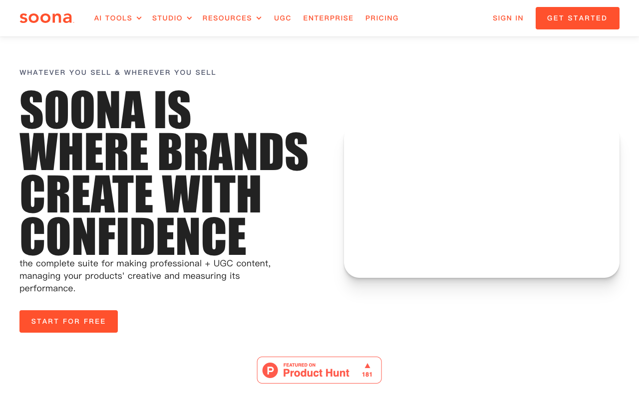 soona是一个专为电商品牌打造的AI创意平台,核心目标是帮助品牌更高效地创建、管理和衡量产品视觉内容,尤其是在Amazon和Shopify这类平台上。