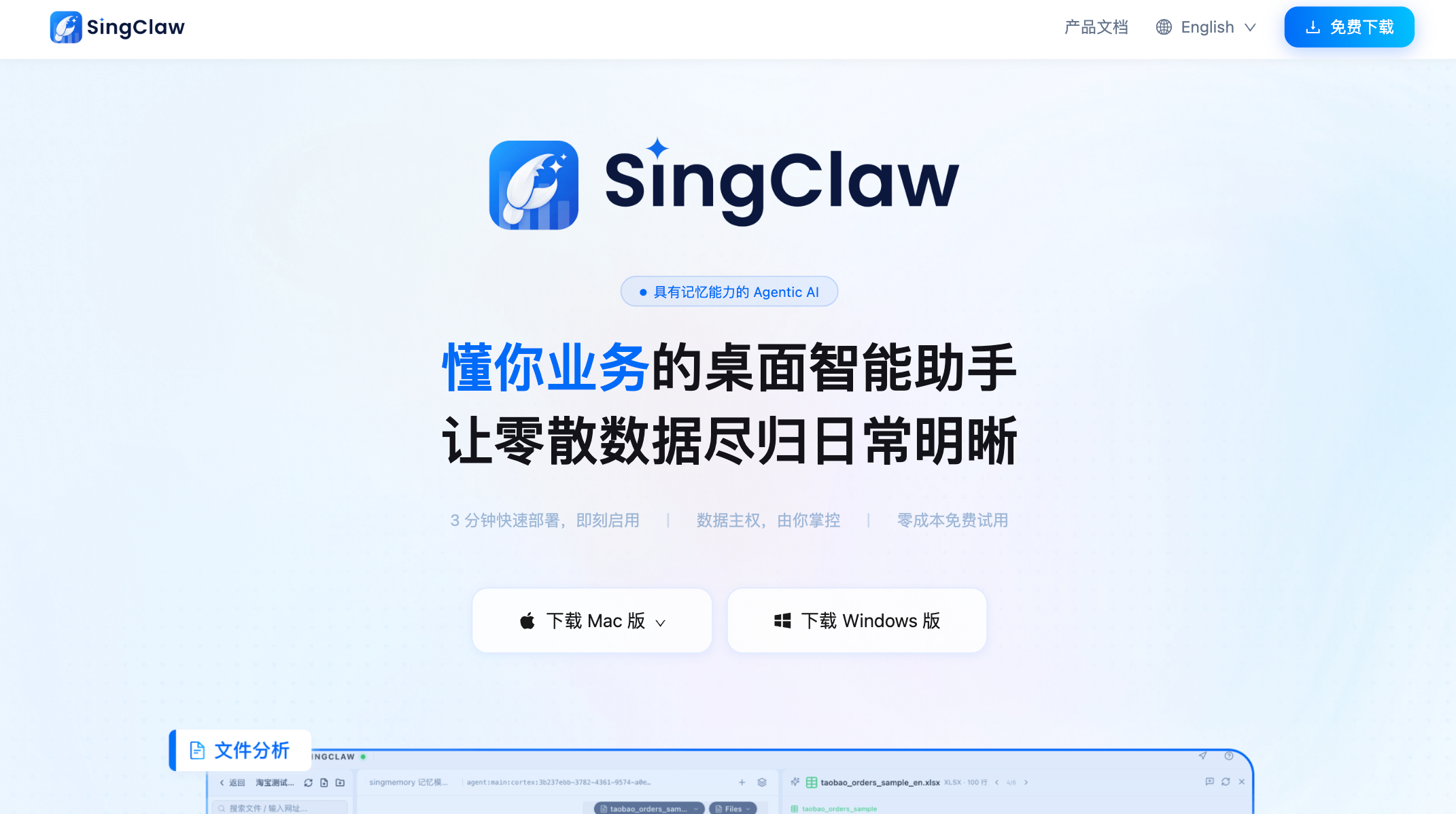 访问 SingClaw官网,下载macOS或Windows桌面客户端即可免费开始。整个过程大约只需3分钟,你的AI业务伙伴就能上岗了。
